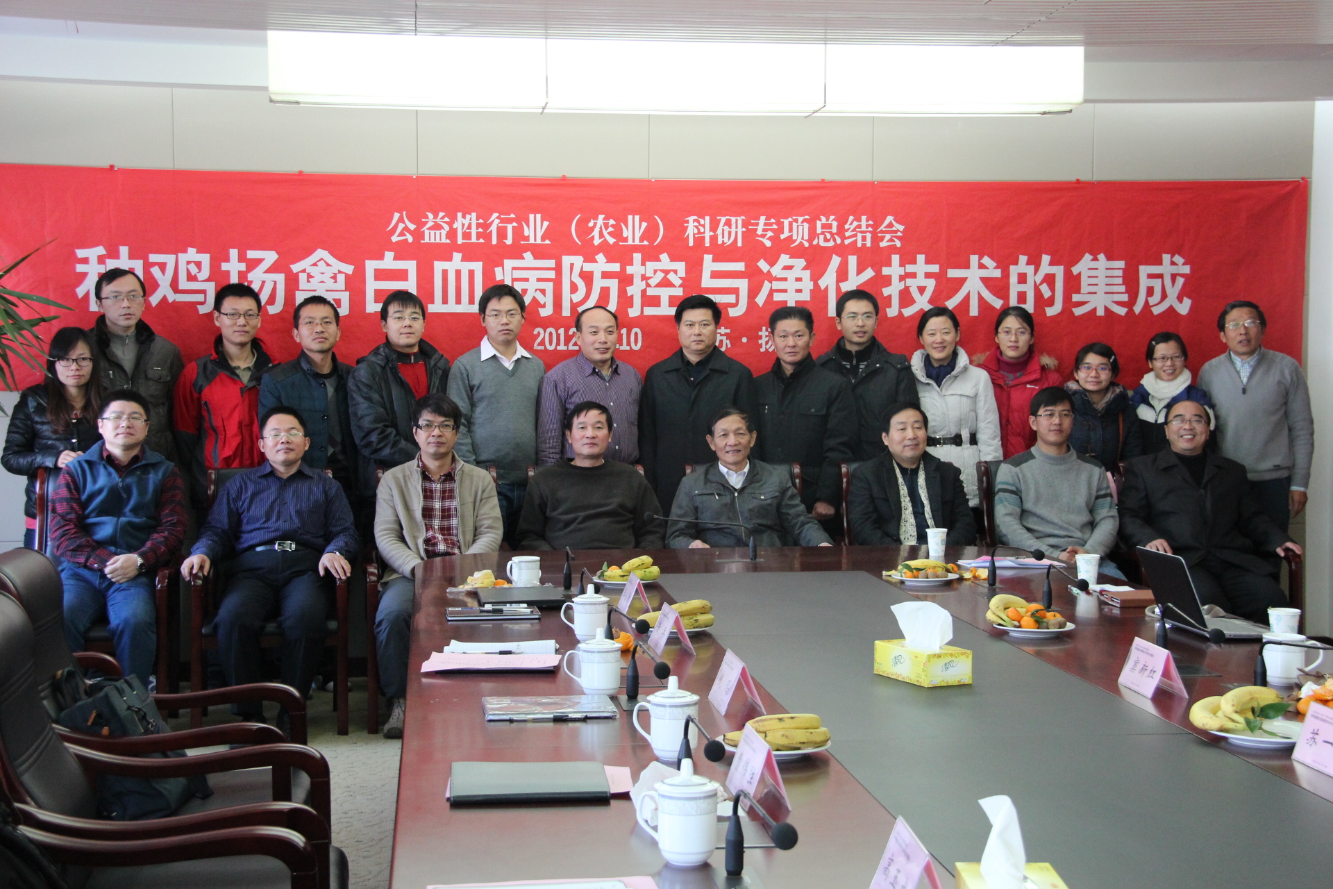 2012年12月9~10日,公益性行业科研专项——种鸡场禽白血病防控与净化技术的集成总结会议在我所召开,项目主持人、山东农业大学崔治中教授主持座谈会。来自中国农科院哈尔滨兽医研究所、中国农业大学、山东省农科院家禽研究所、山东农业大学、扬州大学、广西大学、华南农业大学、江苏省家禽科学研究所的专家参加了会议。