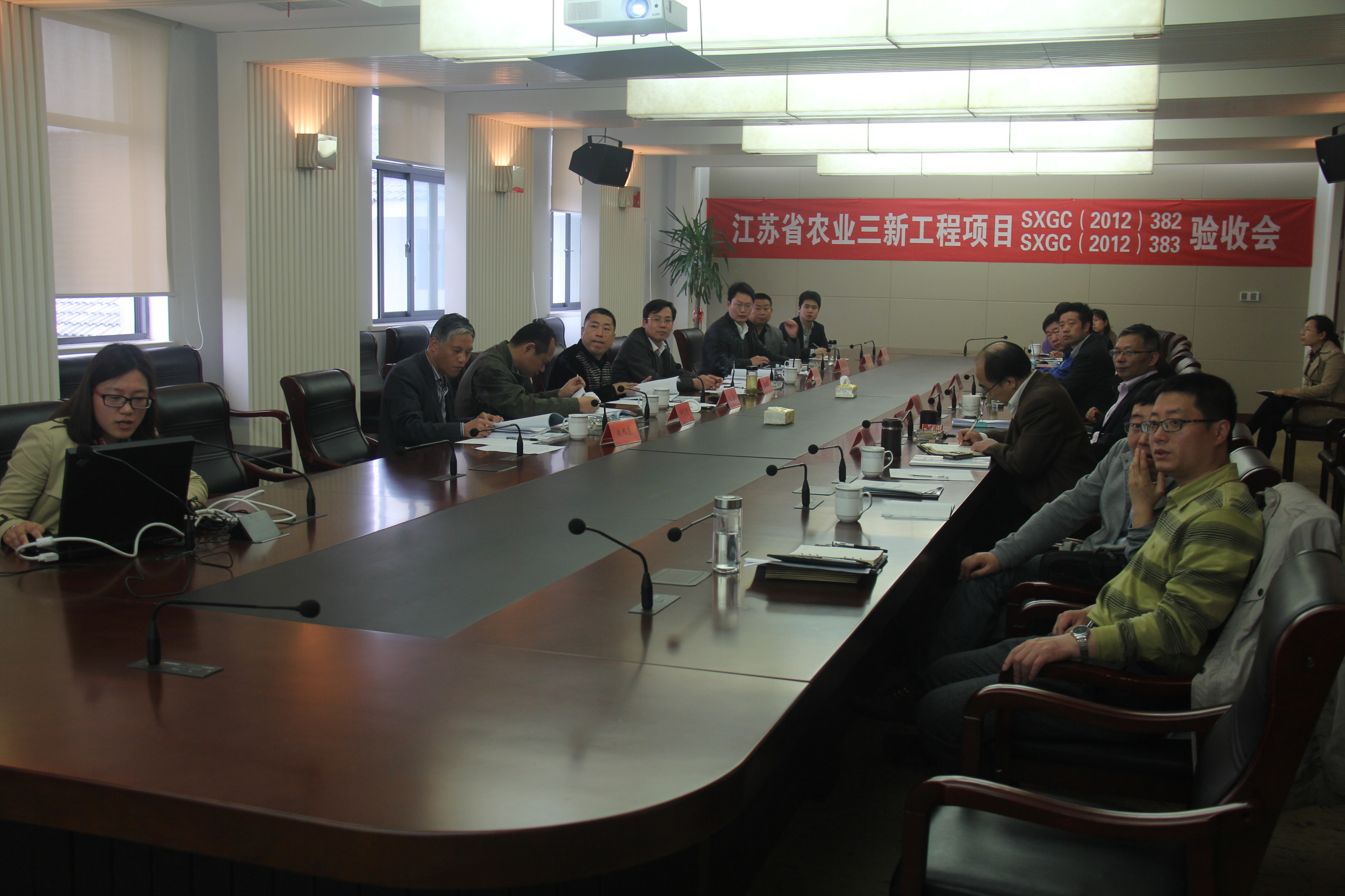 2014年4月26日,江苏省农业三项工程协调领导小组办公室组织有关专家,对我所承担的“鸡标准化养殖重大技术集成推广应用”项目(编号:SXGC[2012]382)和“鸡白痢沙门氏菌病防控技术的应用与示范”项目(编号:SXGC[2012]383)进行验收。专家组听取了项目执行情况汇报、审阅了相关资料,经质询与讨论,一致同意两个项目通过验收。