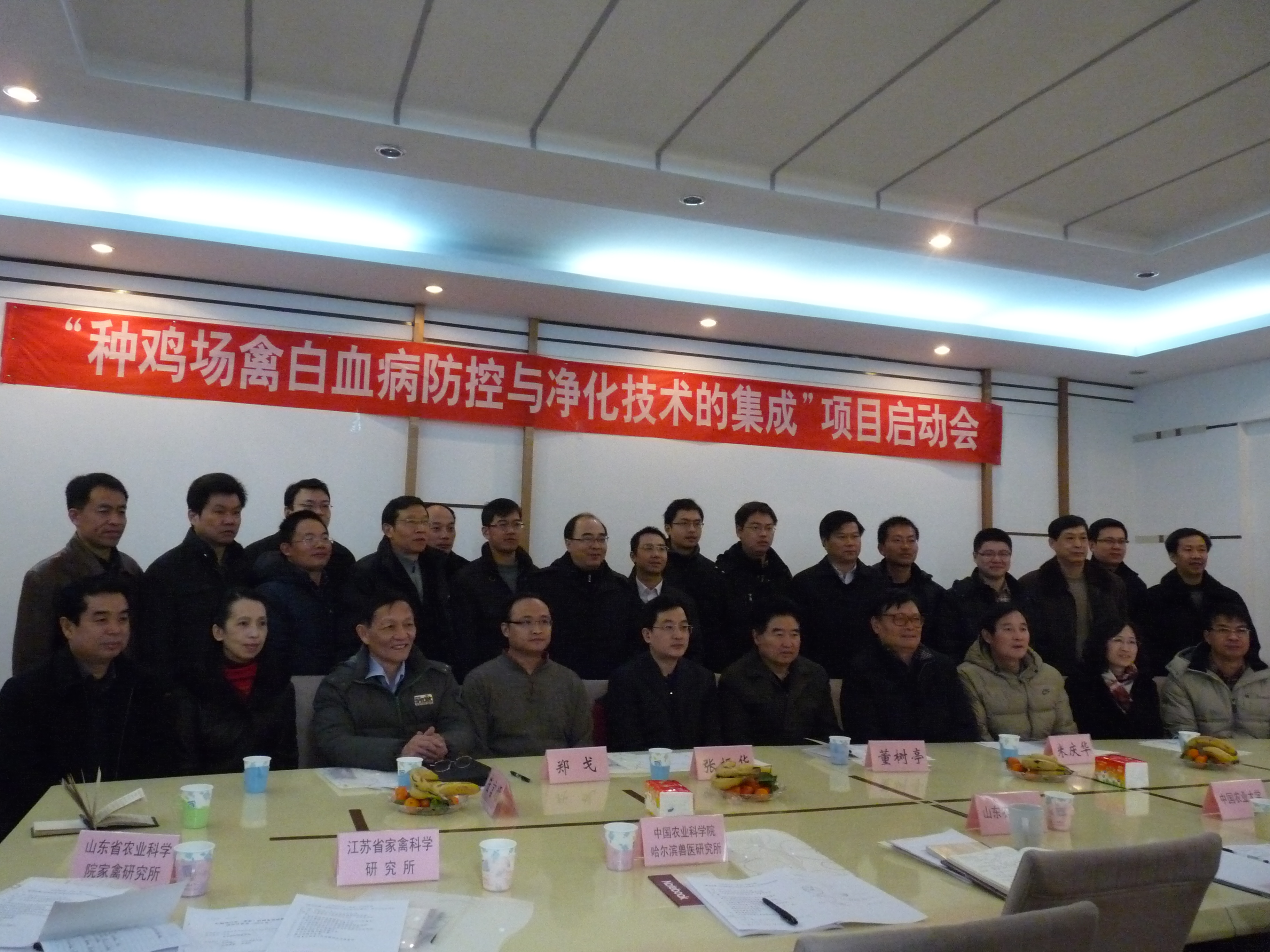2012年2月11日,由山东农业大学主持,中国农业大学、中国农业科学院哈尔滨兽医研究所、广西大学、华南农业大学、江苏省家禽科学研究所、山东省农业科学院家禽研究所等六家协作单位参与的公益性行业(农业)科研专项“种鸡场禽白血病防控与净化技术的集成”项目启动会在山东农业大学顺利召开。我所作为项目主要参加单位之一,由戴有理副所长带队,国家地方鸡种基因库(江苏)主任苏一军、生物安全研究室主任徐步等一行四人列席了会议。