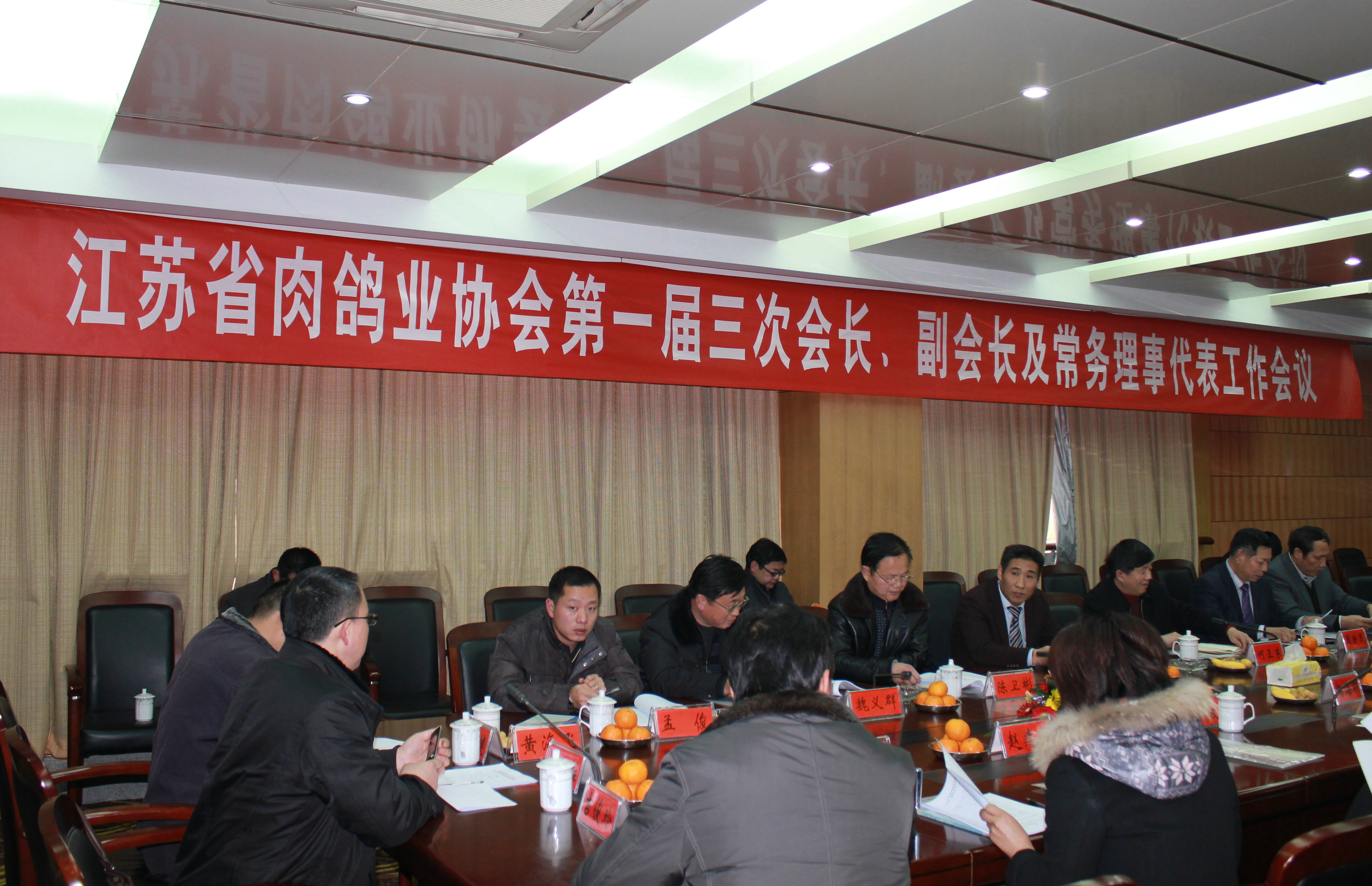 2012年3月6日,江苏省肉鸽业协会第一届三次会长、副会长及常务理事代表工作会议在江苏畜牧兽医职业技术学院隆重召开,江苏省肉鸽业协会会长、副会长、常务理事代表及工作人员共30多人出席了本次会议。会议由江苏畜牧兽医职业技术学院副书记、省肉鸽业协会副会长周新民同志主持。