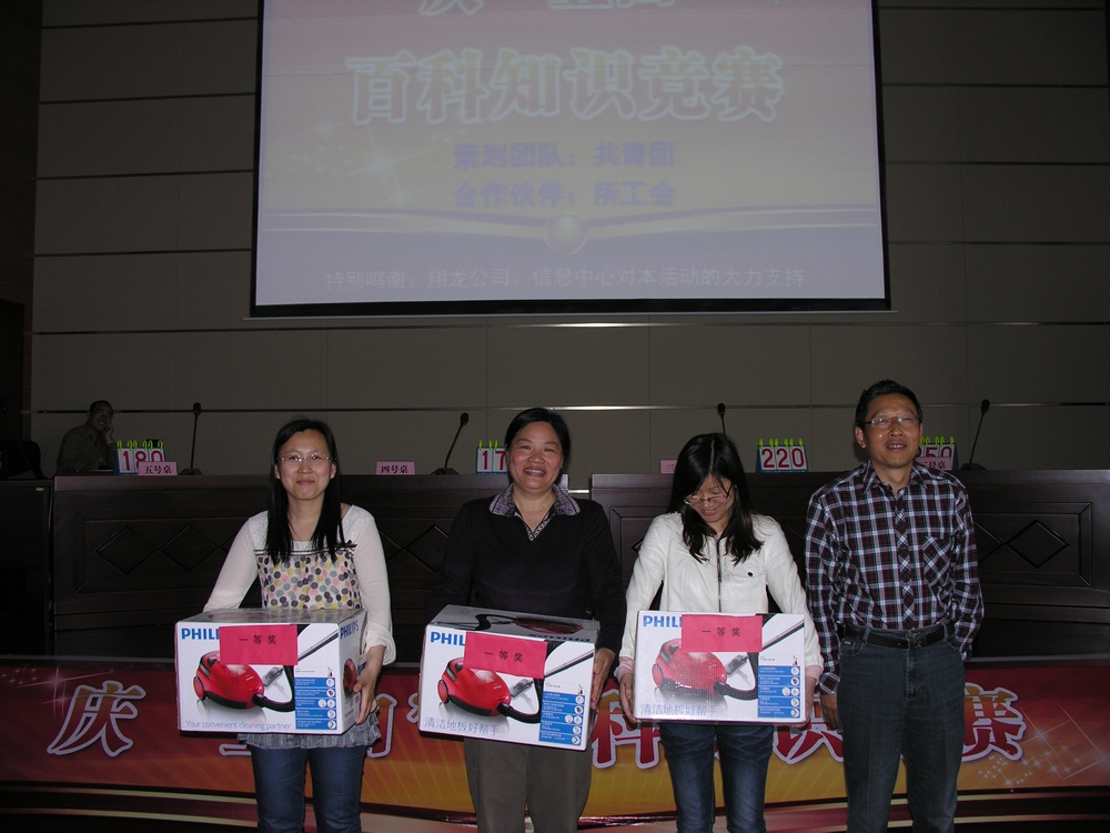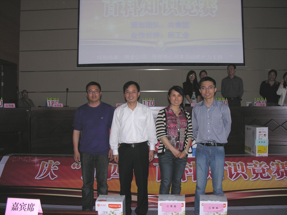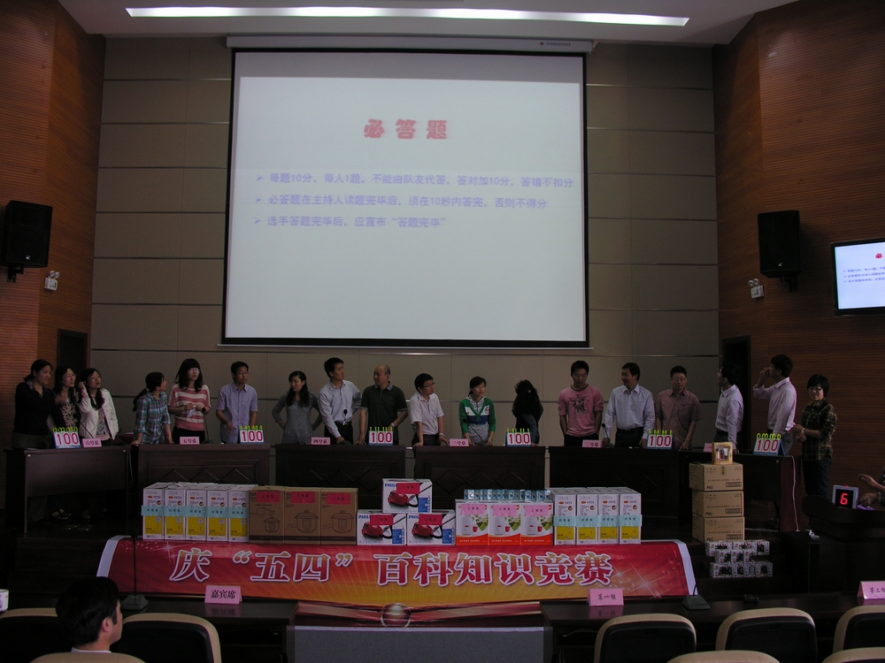 五四青年节来临之际,我所共青团和工会联合主办的“崇尚科学,追求真知”迎五四百科知识竞赛活动在所大礼堂隆重举办,一场全新的知识盛宴,为全所青年学习知识及应用知识提供展示的舞台。所领导也融入到竞赛游戏中,与青年员工共同分享五四青年节的快乐。竞赛的举办增进了我所职工之间的沟通交流,营造积极、健康、充满活力的文化活动氛围,增强了员工集体荣誉观念和团队协作意识。