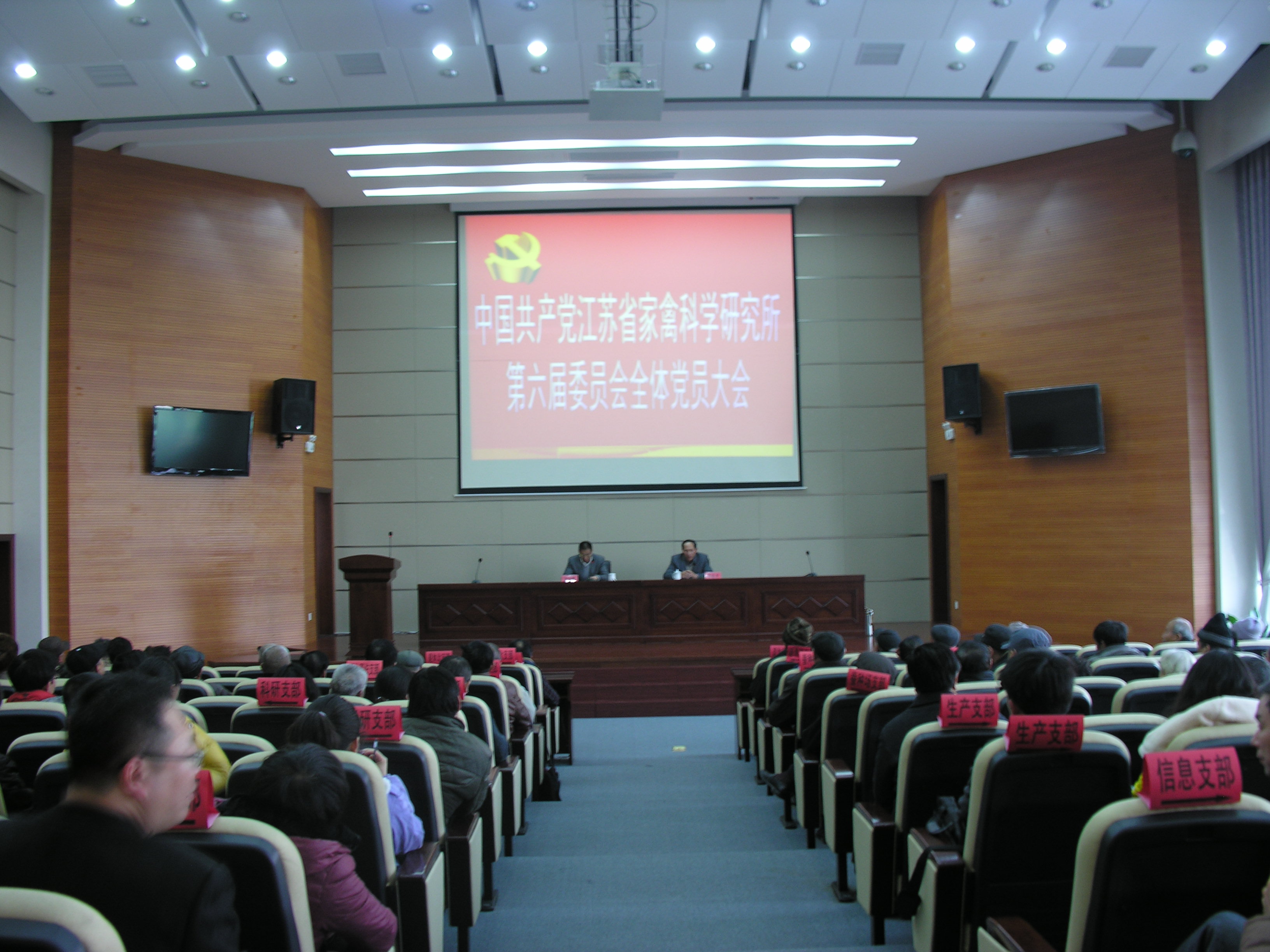 邹剑敏所长、党委副书记主持会议。邢进才书记作了《抢抓机遇谋发展,锐意进取创新篇——中国共产党江苏省家禽科学研究所委员会第五届委员会工作报告》,报告回顾了第五届党委任期以来各项工作所取得的成绩,同时也指出了存在的问题,并提出了今后五年我所党委会的指导思想,部署了重点工作,明确了工作目标,为我所的发展找准方向。