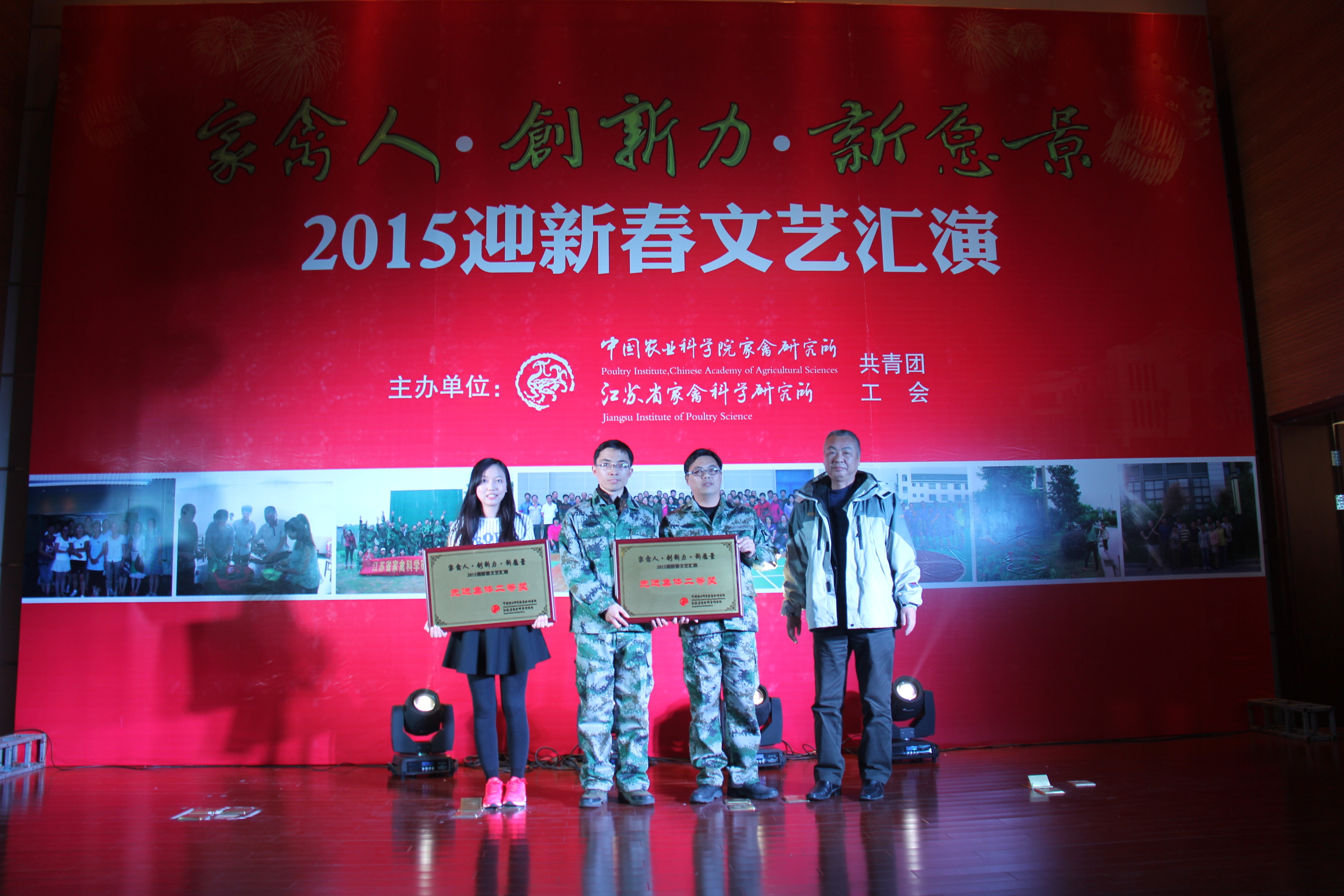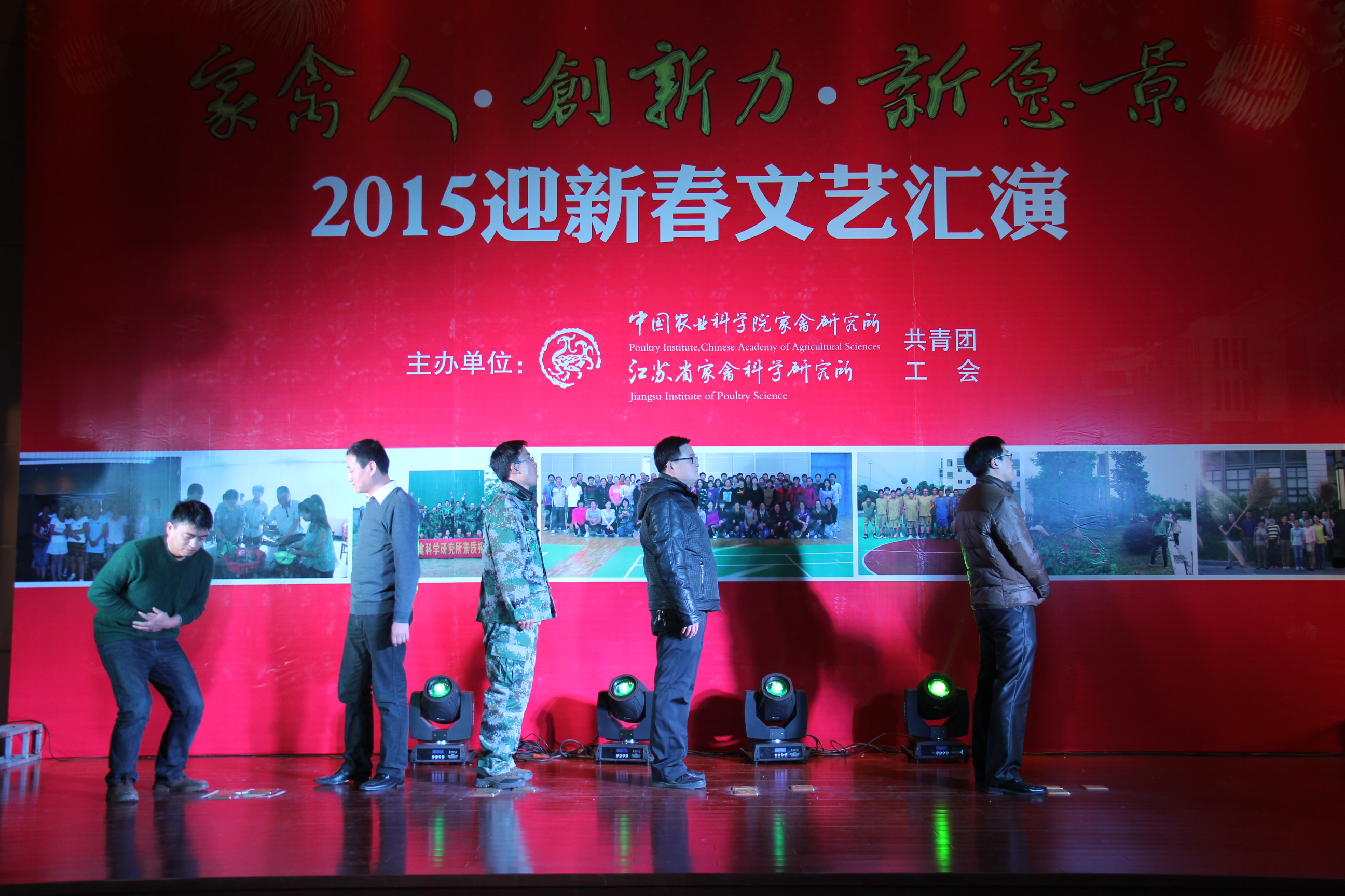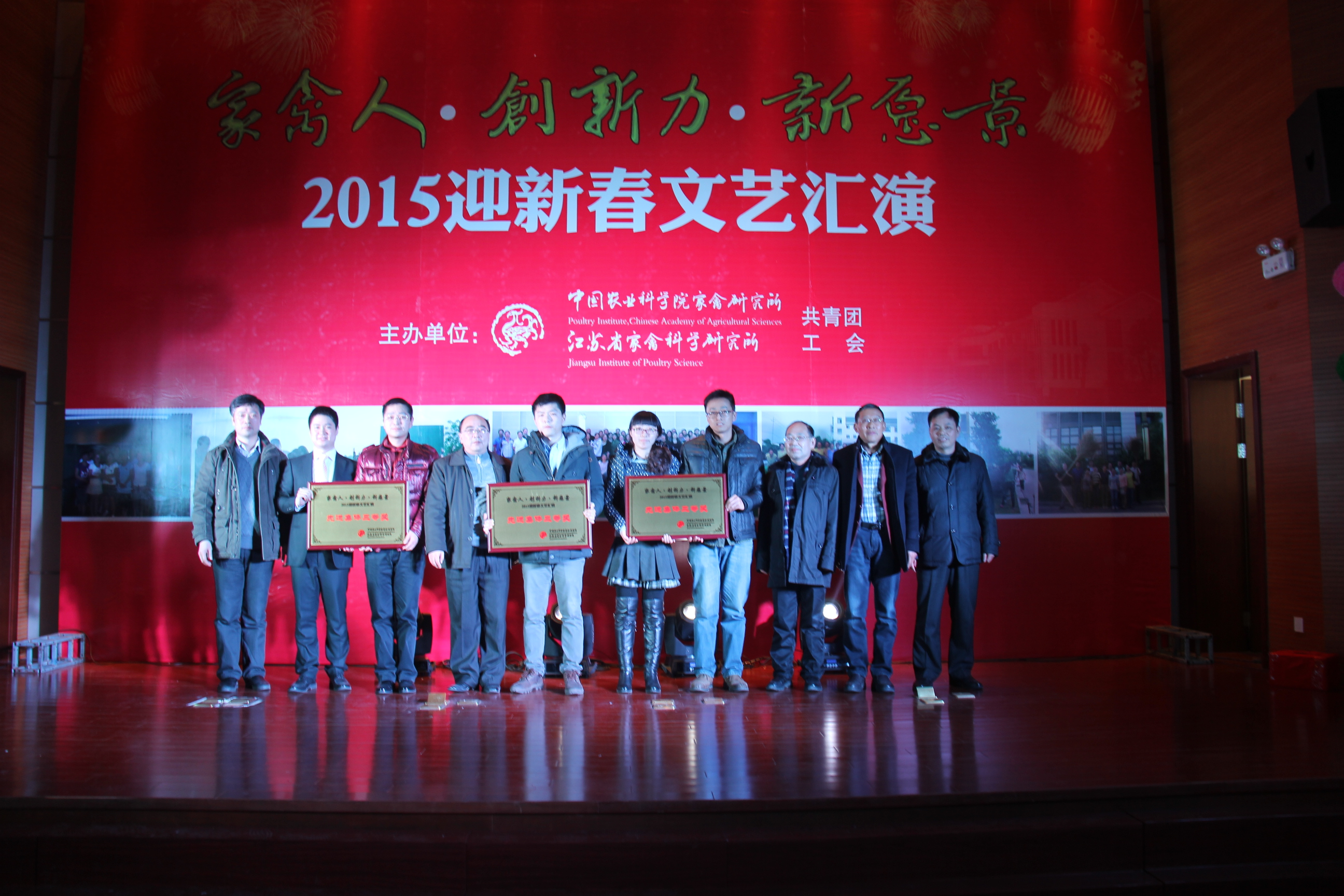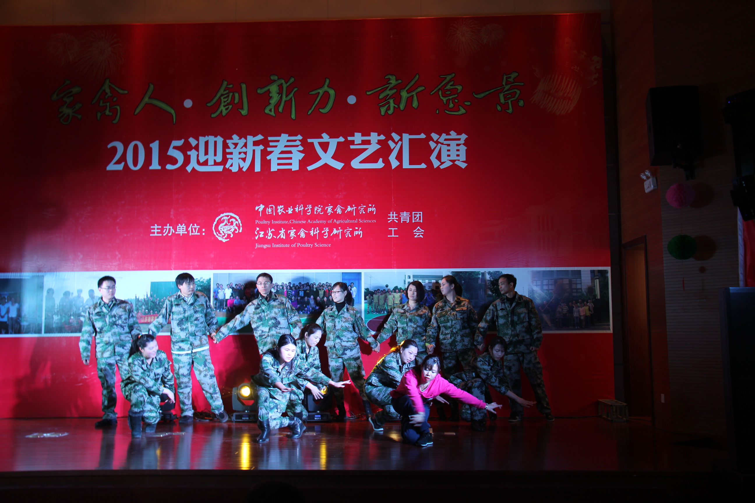 2015年2月10日下午,我所“家禽人 创新力 新愿景”2015年迎新春文艺汇演在所部报告厅隆重举行!首先,所党委书记、所长邹剑敏为此次活动致辞,并为大家送上新春祝福。随后2014年新进入我所工作的人员进行了简洁生动的自我介绍,接着由中禽传媒公司选送的热情欢快的歌舞串烧《为祖国干杯》为文艺汇演正式拉开帷幕。活动通过歌曲、舞蹈、小品、诗音画等丰富多彩的节目形式为全所职工献上了一场文化盛宴。