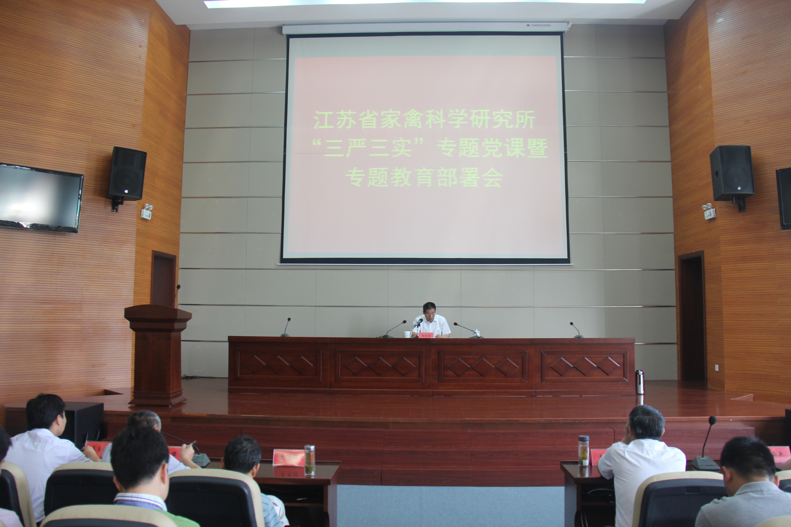 6月18日上午,家禽所举行“三严三实”专题党课暨专题教育部署会,党委书记、所长邹剑敏同志以“践行‘三严三实’ 推动家禽所健康快速持续发展”为题给全所党员上党课,并对全所开展“三严三实”专题教育作动员部署。邹剑敏书记强调,全所党员干部要深刻认识“三严三实”的重大意义,坚决贯彻“三严三实”的实践要求,确保专题教育扎实有效推进。他指出家禽所部分党员干部在作风建设、干事创业、修身做人等方面存在的“不严不实”问题,强调必须把发现和解决问题作为出发点和落脚点,紧紧盯住“不严不实”的问题和具体表现,按照“六查六看六整治”的要求,深入进行剖析,弄清问题性质,找到症结所在,制定整改措施,以解决问题的成果来检验专题教育的成效。