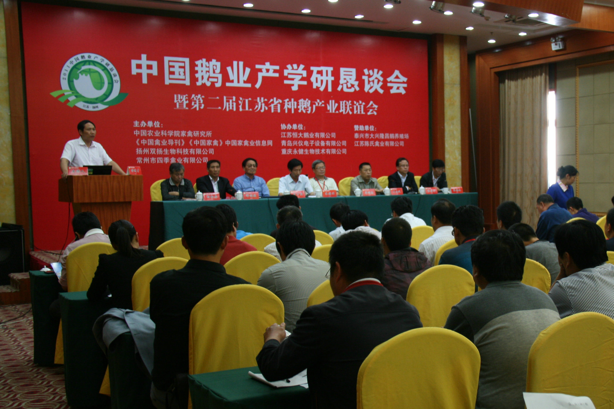 9月23-24日,由中国农业科学院家禽研究所、《中国禽业导刊》、《中国家禽》、中国家禽业信息网联合扬州双扬生物科技有限公司、常州市四季禽业有限公司,共同举办的“中国鹅业产学研恳谈会暨第二届江苏省种鹅产业联谊会”在江苏扬州成功召开,这是我国养鹅业的一次盛会,参加本次会议的领导、嘉宾和国内多个省区的代表共计200余人,共同探讨养鹅业未来发展。