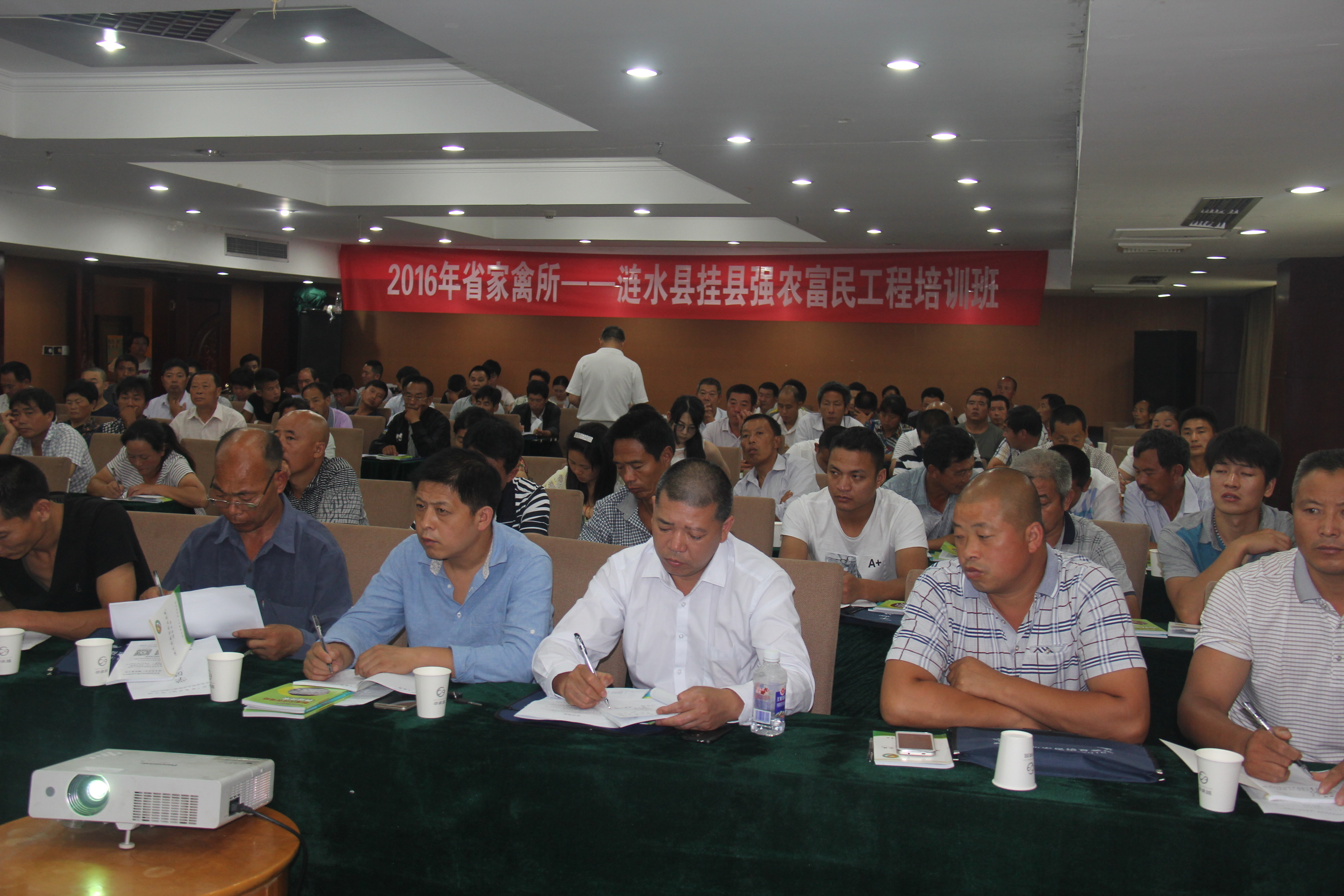 本次培训班上,专家组5位专家就家禽行业现状与发展趋势、当前禽病的流行特点及防治对策、林禽立体种养技术、优质肉鸡的养殖与质量控制、蛋鸡生产效益最大化的关键点及控制5个主题对参训人员进行了全面而系统的讲解。学员们认真听讲并详细做了笔记,并就实际生产中遇到的问题向专家进行了提问。专家进行了一一作答。学员们纷纷表示这样的培训班更贴近养殖生产实际需要,能真正使他们受益。