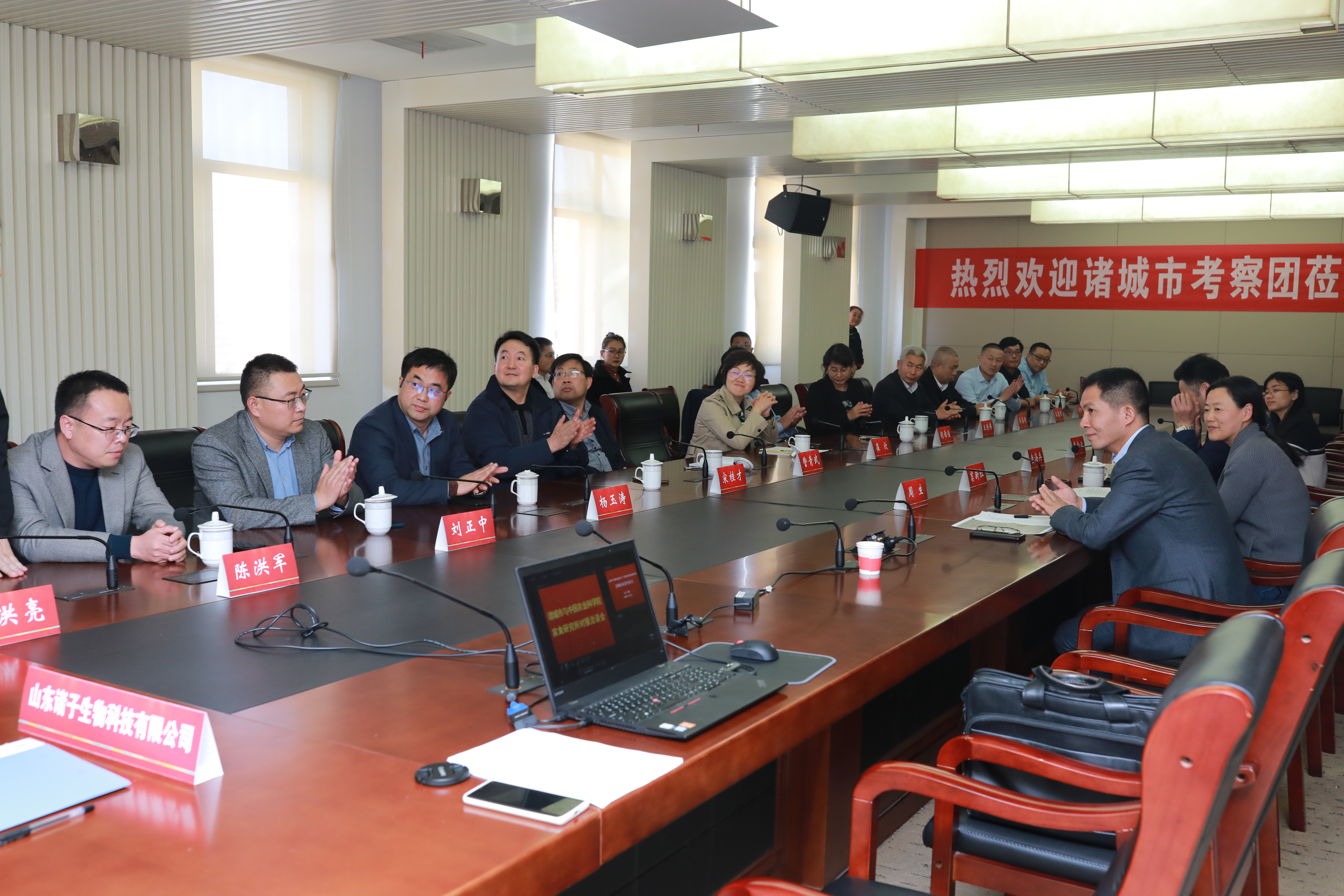 11月12日,山东省诸城市常委、组织部长崔欣带领诸城外贸、中裕机电、仙坛食品、信得科技等10家家禽养殖产业链相关企业、市直部门到我所开展产学研合作对接与科技合作签约活动。在座谈会上,我所童海兵副所长对崔欣部长一行的到来表示热烈的欢迎,并向他们介绍了家禽所的发展历史、科研平台、学科团队建设及近年来所取得的主要研究成果。随后,崔欣部长结合《大道诸城》的宣传片,详细介绍了诸城市产业结构、发展规划及行业技术瓶颈等诸城市产业发展情况。接着双方就家禽养殖有关问题进行了深入研讨交流。我所与山东诸子生物科技有限公司就进一步合作签署战略合作协议。最后,崔部长一行参观了我所中国家禽业信息中心。