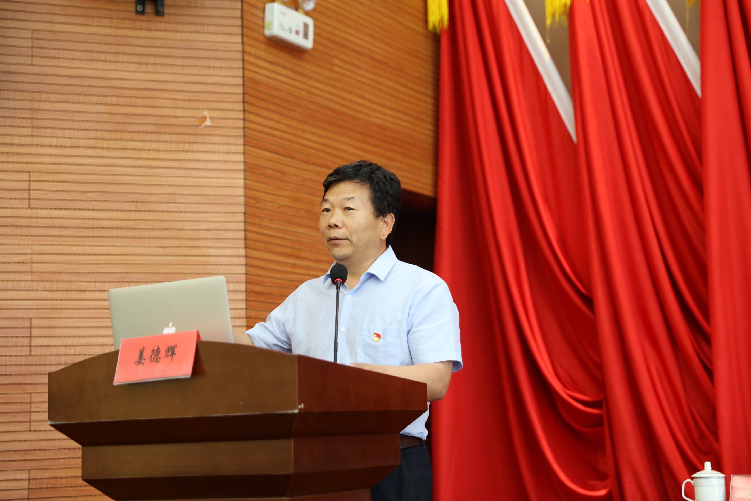 会议邀请市委宣讲团成员、扬州工业职业技术学院马克思主义学院姜德辉教授为全体党员上党课。姜教授以《中国共产党的百年初心和使命》为主题,从初心不改、百折不挠、与时俱进、自我革命等四个方面指出中国共产党能够始终保持先进性的原因,教育广大党员不忘初心,砥砺前行。